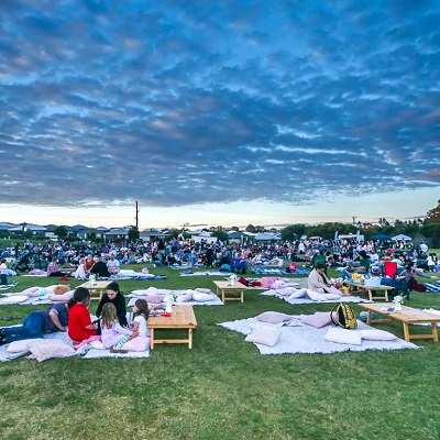 Enjoy an outdoor movie experience under the stars with family-friendly films and picnic vibes in a scenic park setting.